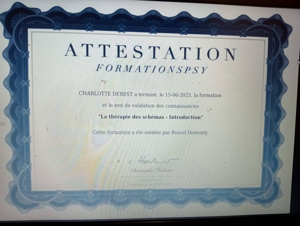 Je suis très heureuse d’avoir suivi et validé cette formation autour de la « thérapie des schémas« .