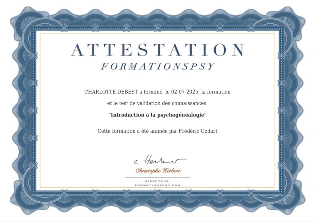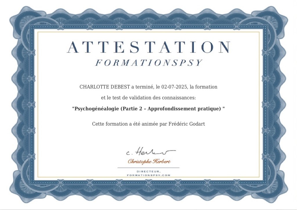 C’est avec beaucoup d’intérêt et de résonnance dans ma pratique que j’ai suivi ces deux modules sur la psychogénéalogie et l’intégration transgénérationnelle.