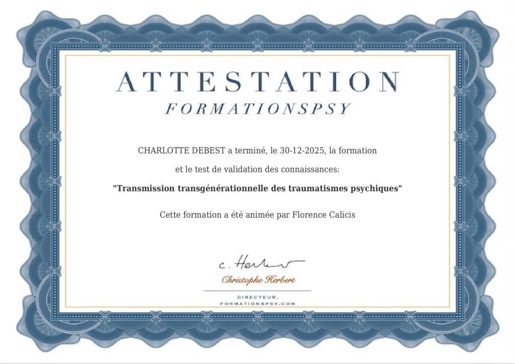 C’est avec beaucoup d’intérêt que je me suis formée à la Transmission transgénérationnelle des traumatismes psychiques.